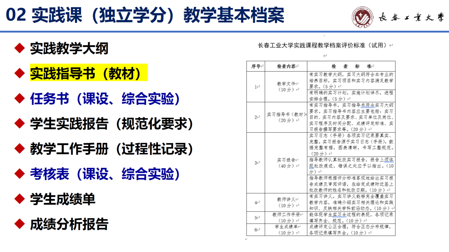 在实践课教学基本档案方面,于教授指出,实践指导书、任务书、员工实践报告、考核表等都是关键部分。她强调,实践教学是培养员工动手能力和创新能力的重要环节,实践教学档案的规范化建设不容忽视。