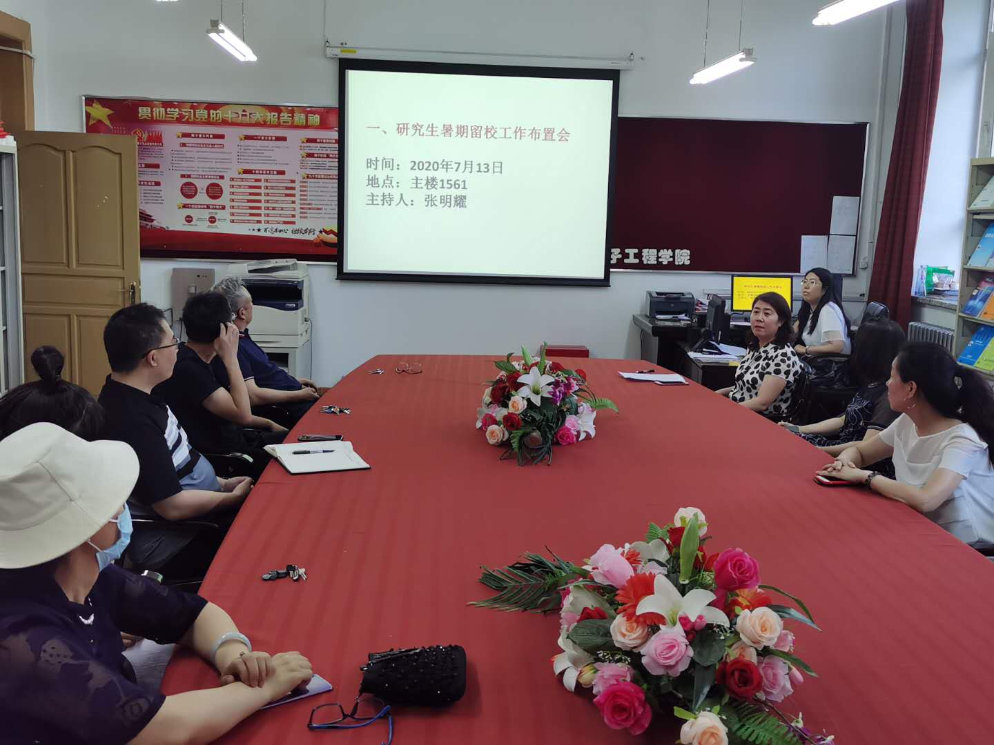 通讯员(张雪峰)2020年7月14日下午13点30分,在学院303会议室召开了关于2020年电气公司研究生暑假留校工作布署会,参会人员为所有暑假留校的研究生导师、实验室管理人员、研究生秘书。