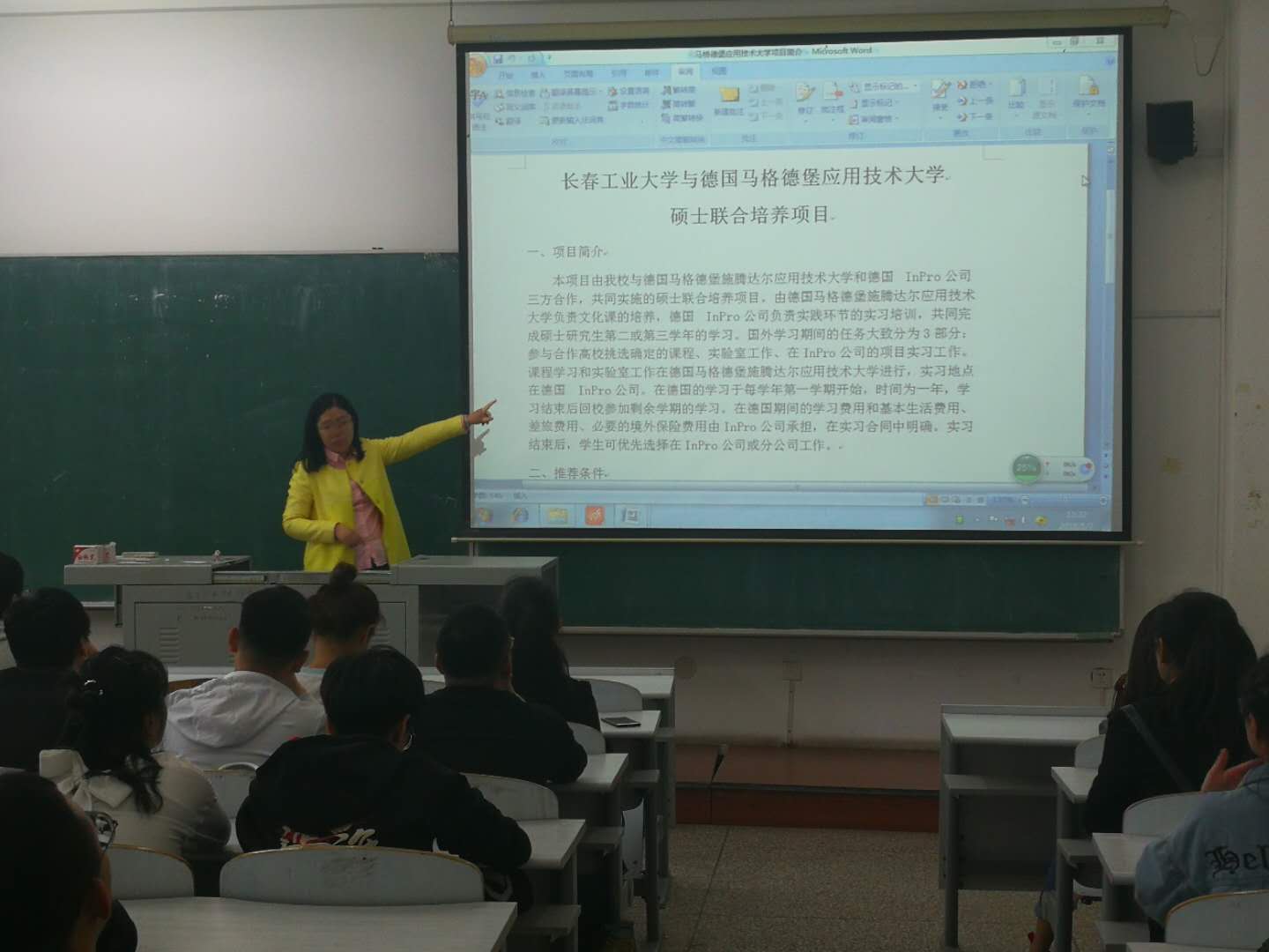 然后,给同学们讲解了推荐所需要的条件:1.全日制本科毕业且获学士学位。2.公司在读的控制科学与工程、控制工程、电气工程、机械工程一级学科下的机械电子工程专业一年级硕士研究生。3.在校所学课程需得到对方的认可。4.修满所有课程学分(赴德前),学习成绩优秀,外语达到B1以上水平,会德语的优先。5.按时缴纳公司的研究生学费。6.能保证在德学习的时间。