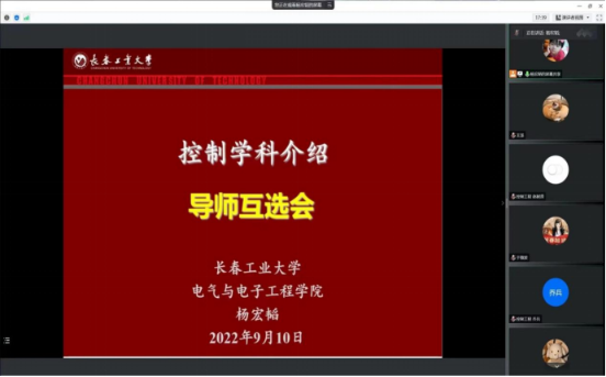 2022年9月10日,太阳集团tyc151cc于线上召开2022级研究生控制学科专业介绍会与研究生导师互选会。副经理王申全、副经理刘帅师、副经理董博、学科带头人、研究生导师参加本次会议。会议由控制科学与工程系主任杨宏韬主持。