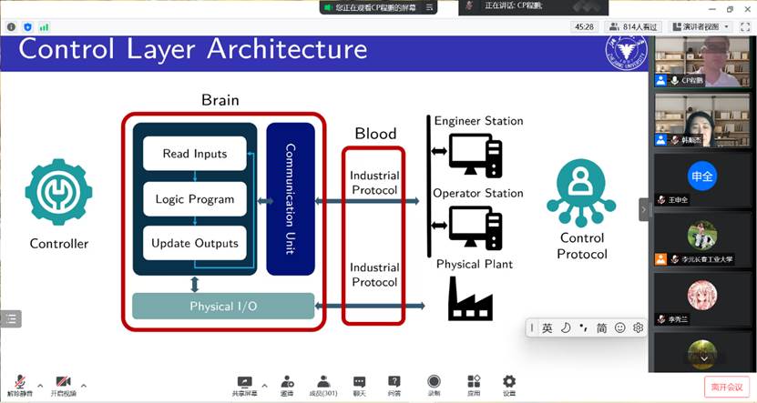 太阳集团tyc151cc建校70周年纪念活动,公司有幸邀请到浙江大学程鹏教授为公司师生作了题为《工业互联网安全:归于控制,远于控制》的线上学术报告。此项活动由研究院主办,公司承办。报告于5月28日19:00点正式开始,由公司经理韩顺杰主持,全院近400名师生在线听取报告。