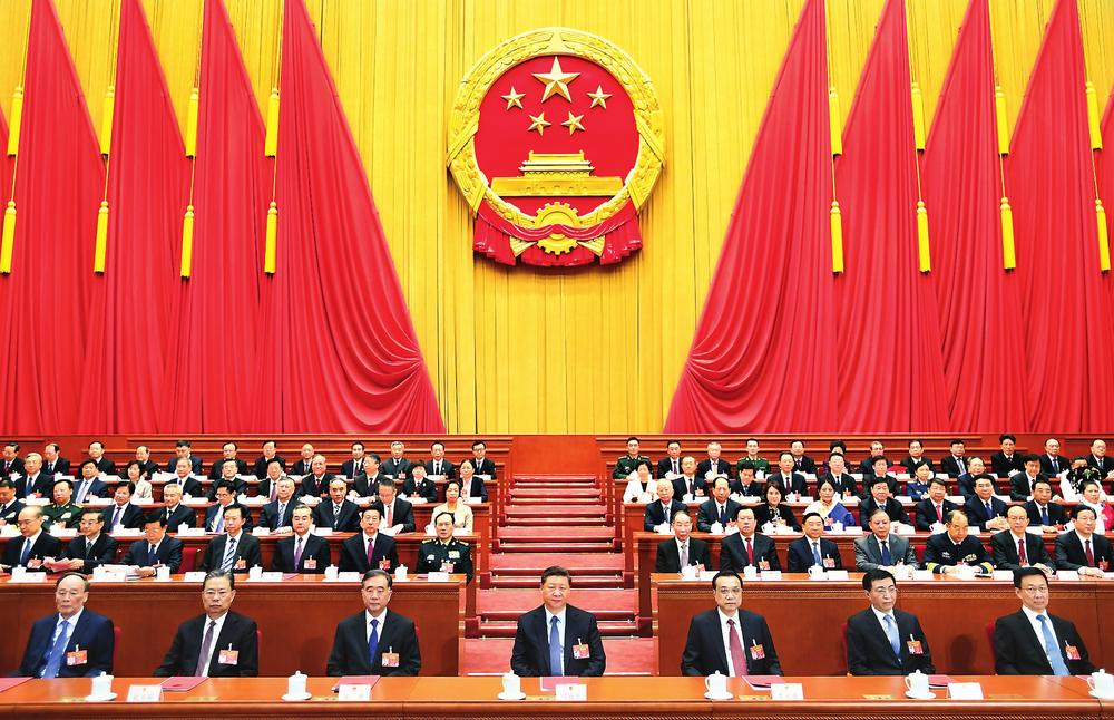 习近平、李克强、汪洋、王沪宁、赵乐际、韩正、王岐山和大会主席团成员在主席台就座。