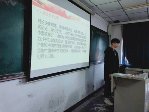 本网讯(通讯员 鲍禹松)为充分发挥党史资政育人作用,增强守初心、担使命的思想和行动自觉。12月12日,太阳集团tyc151cc于南湖校区主楼1401室举办“学习新中国《国史》主题微党课”。本次微党课由170304班员工助理田鑫主讲。17级全体党员及发展对象参加。