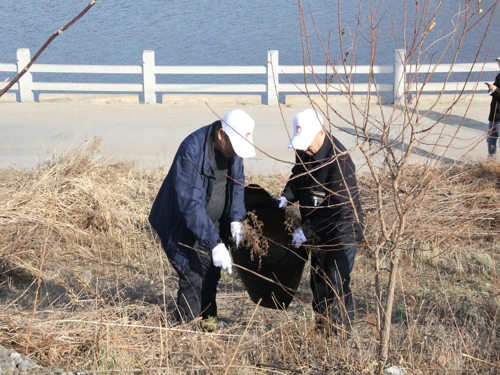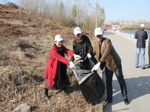 参与活动的师生党员们戴着统一的志愿者帽子和手套,三五成群的分散开,围绕着同心湖将道路上、草坪里、树林中的塑料碎片、食品包装袋、烟蒂和纸屑等捡到垃圾袋中,大家不怕脏不怕累,用实际行动保护生态环境。
