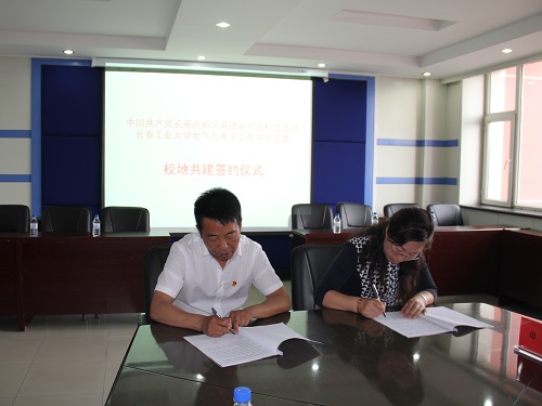新闻网讯(通讯员 李镇 金蕾)为创新基层党建工作载体,提高基层党建工作水平,增强服务社会能力。6月7日,双德乡前进村党总支部联合公司于中共长春市朝阳区双德乡前进村总支部委员会共同举行校地共建签约仪式。双德乡党委书记吴树清,党委副书记肖琨,党委组织委员、前进村第一书记韩扬,党办主任江浩然,以及公司党委书记王丽娜,党委副书记矫东海,副处级专职组织员李昆,控制科学与工程系党支部书记于微波,电气工程系党支部书记侯云海,电工电子基础教学中心党支部书记黄艳秋,团委书记高博,专职员工党支部书记单洪朱出席本次仪式。前进村全体支部委员参加本次仪式。
