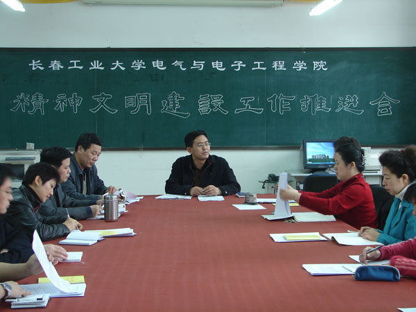 | 4月8日下午2;00,太阳集团tyc151cc在公司资料室召开精神文明建设推进会。对公司精神文明建设工作进行了再部署、再动员。参加会议的有公司党政领导,支部书记、办公室主任和团委书记。公司精神文明建设工作领导小组组长、公司党总支书记张学忠主持会议。 会上,张书记重点阐述了公司精神文明建设工作的背景和重要性。结合公司精神文明建设工作实施方案,将工作任务具体分解到部门,明确到人,并指明了分解任务完成的步骤和预期效果。为各部门和负责人对精神文明建设工作的顺利开展指明了方向,奠定了基础。 会议还对公司理论中心组学习实践活动、2006——2008年度“创先争优”活动、党总支“手牵手、结对帮扶贫困生”活动、教学名师教学公开课活动等进行了具体部署。力争在这些主题活动的引领下,使公司各项精神文明建设工作轰轰烈烈地开展起来,为创建全国精神文明先进单位做出应有的贡献。