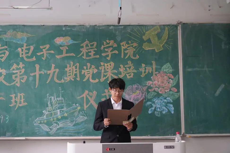 入党积极分子代表秦齐徽同学上台发言。该同学承诺严格遵守纪律,以积极的态度、饱满的热情投入到学习中,不断提升自己的思想境界和政治觉悟,保持蓬勃向上、意气风发的精神,紧密团结在党的周围,积极向党组织靠拢。