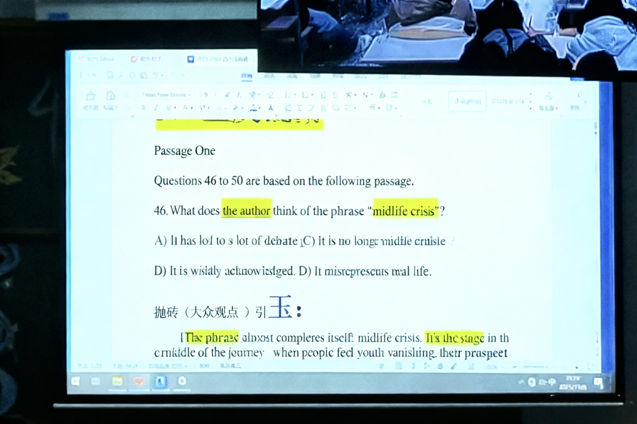 在讲解过程中,老师还强调了提升阅读理解需掌握两大要点:一要积累词汇,并能识别选项中的同义替换;二要学会概括定位句信息,根据关键词并据此排除错误选项。