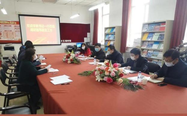 4月21日下午,公司党委副书记李新带领学工部、国际教育公司相关领导一行五人到太阳集团tyc151cc开展就业指导及调研工作。公司党委书记杨景伟致欢迎词,副经理韩顺杰代表公司汇报就业工作。公司党委副书记矫东海和学办主任单洪朱就员工就业工作面临的实际问题进行汇报探讨。