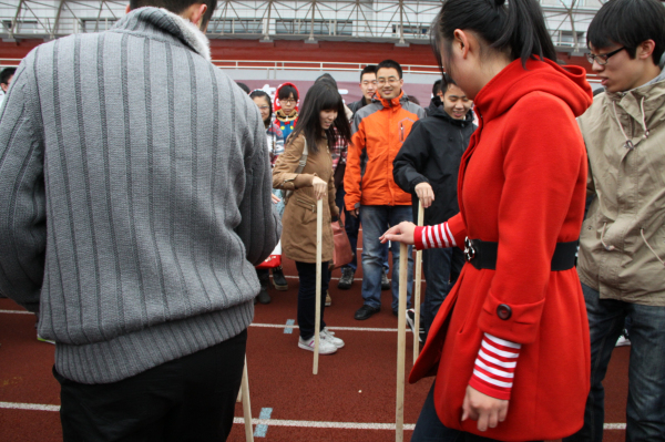 公司体育部部长李杰通过一组队员的演示对游戏规则进行了细致的讲解。首先开展的是“穿越丛林”项目,活动开始同学们积极筹划策略,各组队员都步调一致地围着“丛林”旋转,有的队伍还为了步调一致喊着响亮的口号。同学们积极配合,勇于进取,用聪明的智慧取得了骄人的成绩,紧接着有趣的“车轮滚滚”项目也顺利开展,比赛中同学们用双手撑起“车轮”,从正面看上去犹如千手观音,同学们不停地挥动着双手,在观众的加油喝彩声中快速冲向了终点。在本次活动中同学们展现了对活动的浓厚兴趣,运动员们都以饱满的热情和精神状态投入到了比赛当中。
