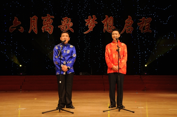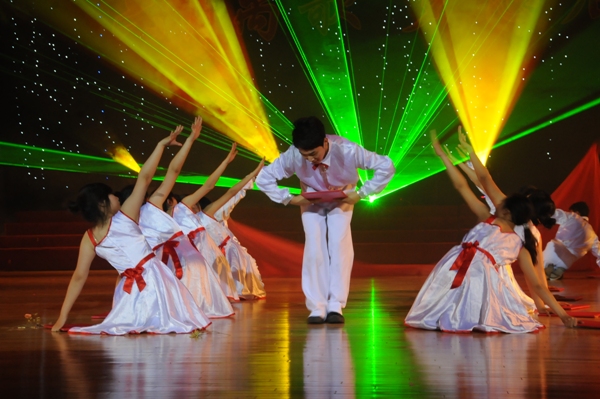 晚会历时两个半小时,一曲《从这里开始》拉开了晚会的序幕,一段街舞《together》诠释了青春赋予我们的激昂活力。相声《向左走,向右走》讲述了考研与就业抉择的敏感话题。舞蹈《床前明月光》,小品《追忆大学》纷纷表达校园的书香气氛与大学带来的美好回忆。随后,由公司老师带来的歌曲联唱,寄托了老师们的牵挂与祝福。舞蹈《向梦飞扬》,歌曲《光明》更是表现了对毕业生们未来生活的衷心祝福。晚会最后,2011届毕业班辅导员赵爽老师追忆了四年来与同学们共成长、同经历的点点滴滴,并与毕业生同学们激情演唱了歌曲《祝福》,整个会场充满着温情和感动,将整场晚会推向高潮。