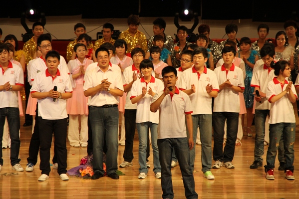 激情的夜留下的是喜悦的面容,离别的夜其实并不孤独。道不尽的离别情,诉不完的留恋意,师恩难忘,情意难舍。晚会在一片浓浓的温情中落下帷幕,参加晚会领导、老师、同学深深融入到这片离别情谊之中。会终,与会领导上台与公司师生合影留念。 |