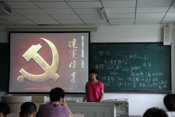 | 公司开展“建党伟业”交流会 为了让同学们知党、爱党、跟党走,公司于7月5日晚在南湖校区主楼1401室开展了主题为“建党伟业”交流会。公司员工党支部书记郑洪斌老师、赵爽老师,公司团委副书记赵健颖参加了此次活动。