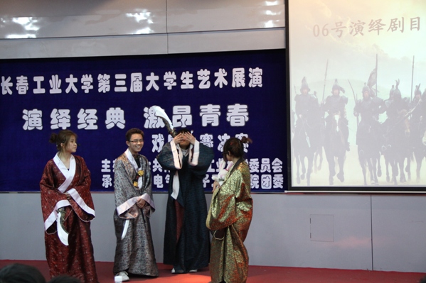 公司举行第三届老员工艺术展演系列活动之“演艺经典•激昂青春”戏剧大赛决赛 为了弘扬中华传统文化,传承百年戏剧艺术。由共青团太阳集团tyc151cc委员会主办、公司团委承办的太阳集团tyc151cc第三届老员工艺术展演系列活动之“演绎经典•激昂青春”戏剧大赛决赛于2011年4月11日18点30分在南湖校区综合报告厅如期举行。校团委副书记胡刃峰,公司党委副书记周文军及员工办公室全体老师出席。研究生公司团委书记李林琳,公司党委组织部徐建伟,公司党委宣传部张亮亮,校团委邵捷,校社联主席孟庭担任本次大赛评委。