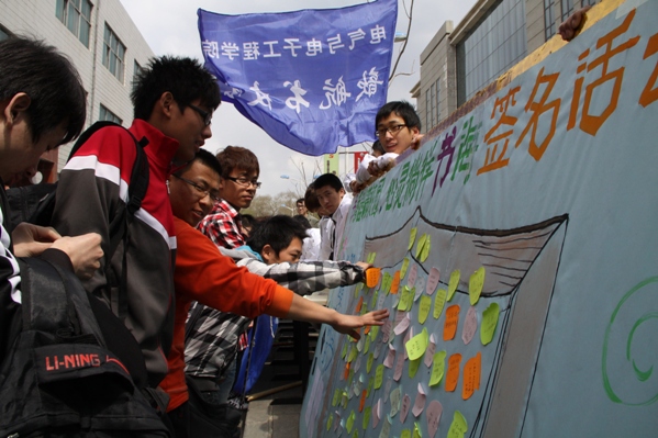 公司举办“书香溢满校园,心灵徜徉书海”签名活动 在世界读书日来临之际,为了发扬同学对书籍的喜爱,倡导对书籍的爱护,征集员工在读书中的所感、所悟,爱护书籍,以书会友。4月25日,公司歆航书友会在老员工活动中心门前举办“书香溢满校园,心灵徜徉书海”签名活动,董事长张德江,校团委书记李东玲,公司党委书记张学忠,副书记周文军及员工办公室全体老师亲临活动现场。