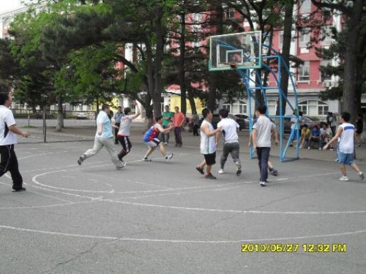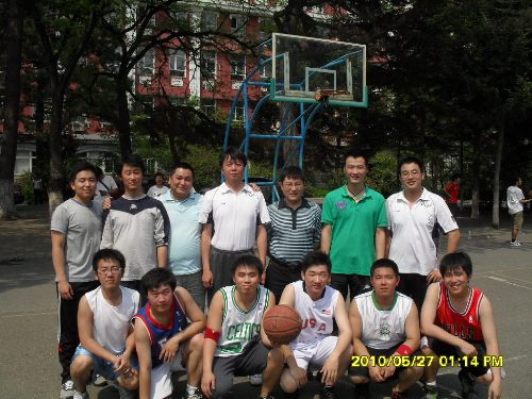 | 公司举行师生篮球友谊赛 为了促进员工健康运动的开展,活跃校园文化氛围。5月27日中午12时30分 ,公司在公司南湖校区篮球场举行一场别开生面的师生篮球友谊赛,老员工就业指导中心张志伟老师和公司党委副书记周文军观看了比赛。