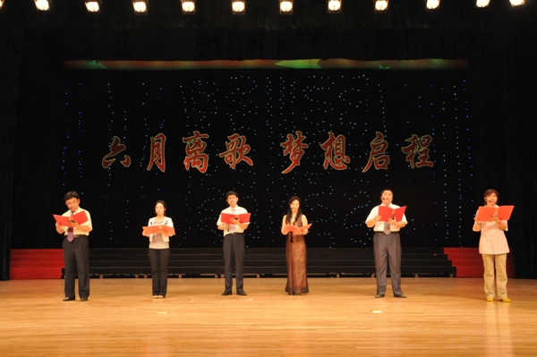 公司举办“六月离歌 梦想启程”2010届毕业晚会 6月19日晚6:30,公司在南湖校区老员工活动中心举办“六月离歌,梦想启程”2010届毕业晚会。校员工工作处处长李雁冰,校团委书记李东玲,员工工作处副处长尤海涛、杨文龙,公司党委书记张学忠,经理尤文,副经理卢秀和、姜长泓,党委副书记周文军及公司师生观看了晚会。