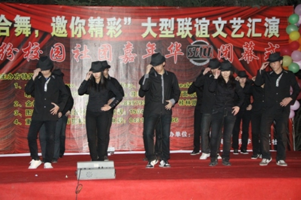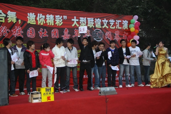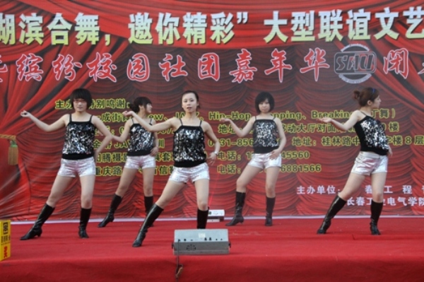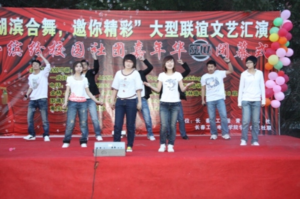 湖滨合舞 邀你精彩 ——公司举办大型联谊文艺汇演暨缤纷校园社团嘉年华闭幕式 2010年5月8日晚6点整,公司与长春工程公司春藤书社在公司南湖校区主楼前联合举办了“湖滨合舞,邀你精彩”大型联谊文艺汇演暨缤纷校园社团嘉年华闭幕式。长春工程公司管理公司老师及公司党委副书记周文军、团委书记矫东海、员工党支部书记赵爽及活动赞助商代表观看了演出。