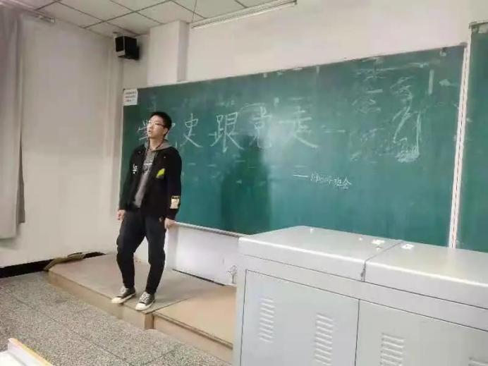 190303班为大家讲述了王进喜的光辉事迹。在科技领域,他以“识字搬山”的意志克服令人意想不到的困难,闲暇之余也要刻苦学习,带领工人们创造出一个又一个优异的成绩。王进喜在担任钻井指挥部生产大队长期间,经常身背干粮袋,骑着摩托车或步行深入到各大井场,调查研究,检查工作,帮助基层解决各种实际问题。在环境极其恶劣的情况下,即使忍受着胃病的折磨他也会严格保证油田产量和质量。
