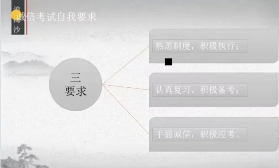 人无信而不立。本次会议让同学们充分认识到诚信考试的必要性。除平时扎实学习外,在考试中考出自己真正的水平与实力也是诚信的象征。一次成功的考试不是只由几张试卷组成,而是由公司各个部门的合理安排和各位监考老师的辛勤付出构成的。希望同学们能够认真对待每一次考试,以诚信为本,取得自己满意的成绩。