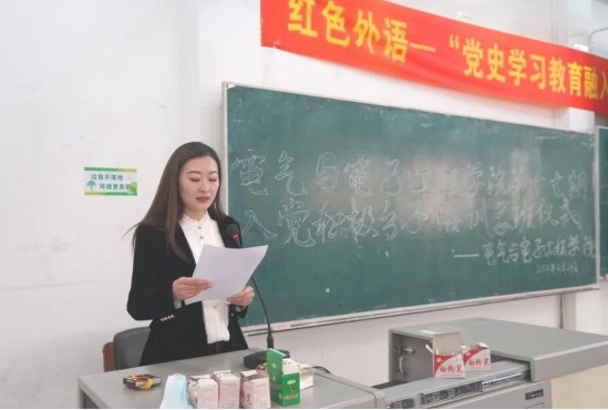 由21级电气工程专业研究生王淮冬作为入党积极分子的代表发言。王淮东说到,新时代的我们在党的哺育下茁壮成长,我们应用高度的热情、认真的态度对待一切工作、恪尽职守,真正落实党的全心全意为人民服务的宗旨。“以青春之我,创建青春之家庭,青春之国家,青春之民族。”百余年前,在李大钊的影响下,许多青年走上了革命的道路。“当代中国青年是与新时代同向同行、共同前进的一代,生逢盛世,肩负重任。”一百年之后的今天,习近平总书记对当代青年的深情寄语言之谆谆,意味深长。