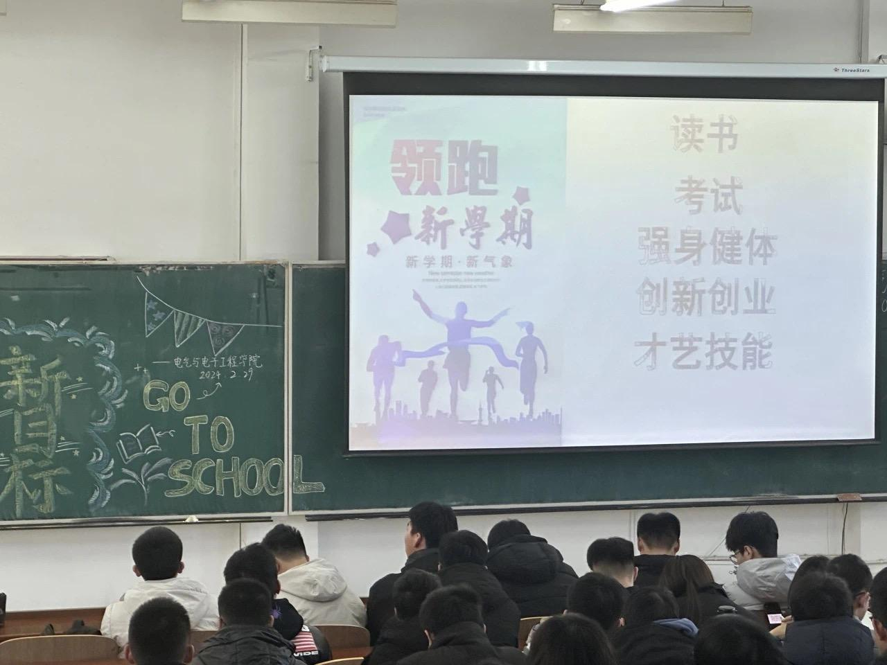 本网讯(通讯员 王亮)微风有信,花开有期,迎着朝阳,再次步入学堂,快乐冲浪。我们在欢声笑语中,充斥着对新学期校园的无限期待。与此同时,我们再一次共同坐在一个教室,辅导员老师带领我们开展了新学期的第一个年级大会——“新学期、新起点、新征程”,在大会上老师向同学们传达重要的信息,分享新学期的计划和目标,并提供一些有益的指导和建议。员工们也将有机会与辅导员互动,提出问题和关注点,共同探讨如何度过一个充实而有意义的学期。