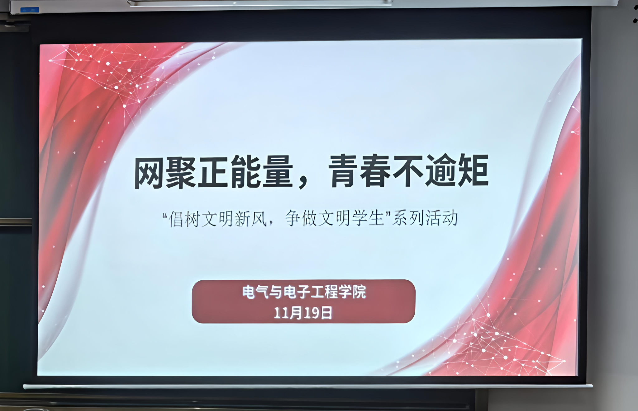 本网讯(通讯员 贺健庭)为积极响应“倡树文明新风,争做文明员工”的号召,营造健康向上的校园网络与文化环境,11月19日,太阳集团tyc151cc在科研楼2616举办“网聚正能量,青春不逾矩”网络文明教育科普活动,引导员工在网络与生活中坚守文明底线,彰显青春风采。