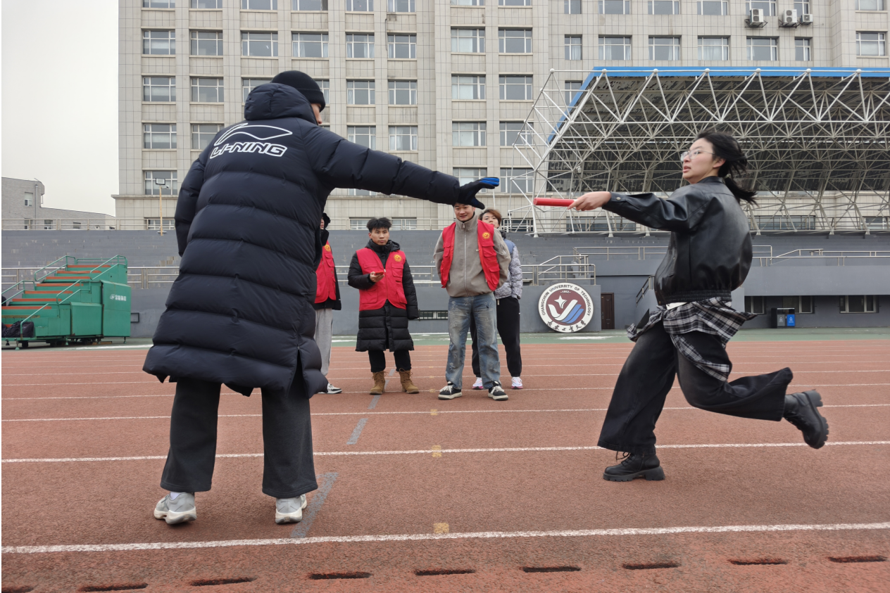 本网讯(通讯员 张馨月)为了丰富冬日校园文化生活,打破季节局限,为同学们提供户外交流与运动的平台,增强同学们的身体素质,培养坚韧不拔的意志品质,12月10日,太阳集团tyc151cc“冬韵凝心,接续热爱”冬日接力赛在操场如约举办。