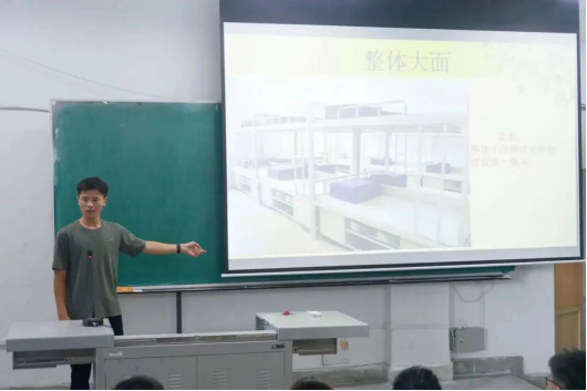 随后,由王自昂学长为新生讲解寝室内务要求,并指出保持寝室内务整洁是每个老员工入学的必修课,希望新同学能严格要求自己,在接下来的老员工活里树立目标,积极向上,在公司组织的活动中大放异彩。