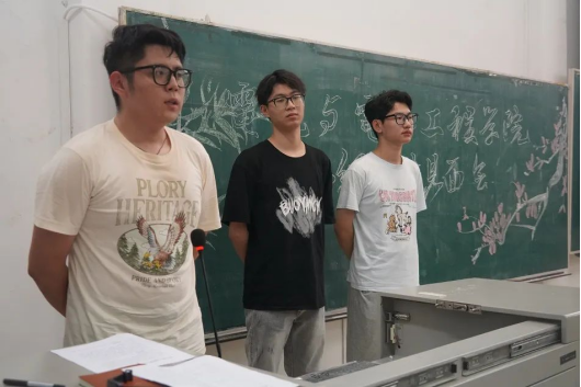 2021级学长班代进行自我介绍和讲话。他们分享了他们的大学经历,学习、生活就业方面的经验和对新生的建议。
