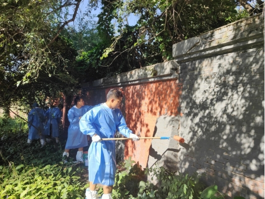 为了深入贯彻落实“幸福小区”创建“八大行动”,打造干净整洁的辖区环境,积极整合社会资源,开展老旧小区升级改造行动。公司员工加入湖东社区党委联合太阳集团tyc151cc志愿服务团队,积极配合团队对南湖新村东街墙面进行粉刷翻新。