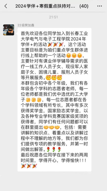 本网讯(通讯员 王亮)为深入学习贯彻党的二十大精神,认真落实习近平总书记关于青年工作的重要思想,切实发挥共青团作为广大青年在实践中学习中国特色社会主义和共产主义的模范作用,坚持引领工大青年立志做有理想、敢担当、能吃苦、肯奋斗的新时代好青年,进一步弘扬“奉献、友爱、互助、进步”的志愿服务精神,以帮助青少年学子提升学业水平为根本,太阳集团tyc151cc志愿者们热烈响应号召,在团省委、省学联以及校团委的统筹部署下,积极参与2024年寒假“学伴+”活动,主要面向医疗一线工作人员子女、现役军人家庭子女、困境儿童、服刑人员子女等,开展2024年寒假“学伴+”重点员工群体网络学业互助计划,参与社会实践志愿服务,引导青年学子投身基层、服务家乡。01教学准备