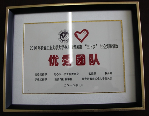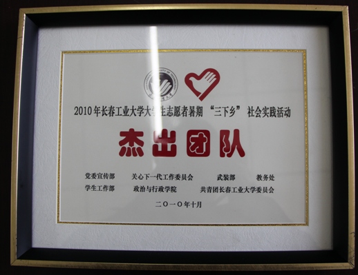 | 公司召开2010年老员工志愿者暑期“三下乡”社会实践活动表彰大会 今年暑期,公司组织开展了以“服务三农发展、共建美好家园”为主题的“三下乡”社会实践活动,公司党委高度重视,公司团委集中组织了1个社会实践服务营,1支国家级重点实践服务团队。20余之校级社会实践小分队。按照公司社会实践工作安排,经过公司组织申报,校团委审核,最终公司获得优秀社会实践活动服务营,公司赴梅河口市湾龙乡科技兴农实践服务小分队获得社会实践活动杰出团队,赴长岭县北正镇中心校支教实践小分队,林志琦、周文军、矫东海、郑洪斌、赵爽获社会实践活动优秀指导教师,徐婷、杨奥棋、赵健颖、李佳俊、解志强、王艺儒、冯衍赫、苏大伟、李怀宇、曹冬月获得社会实践活动优秀员工个人。