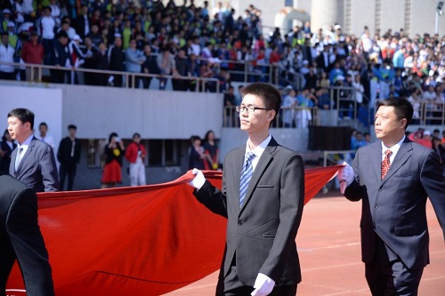 尹永平同学在校运动会中担任旗手