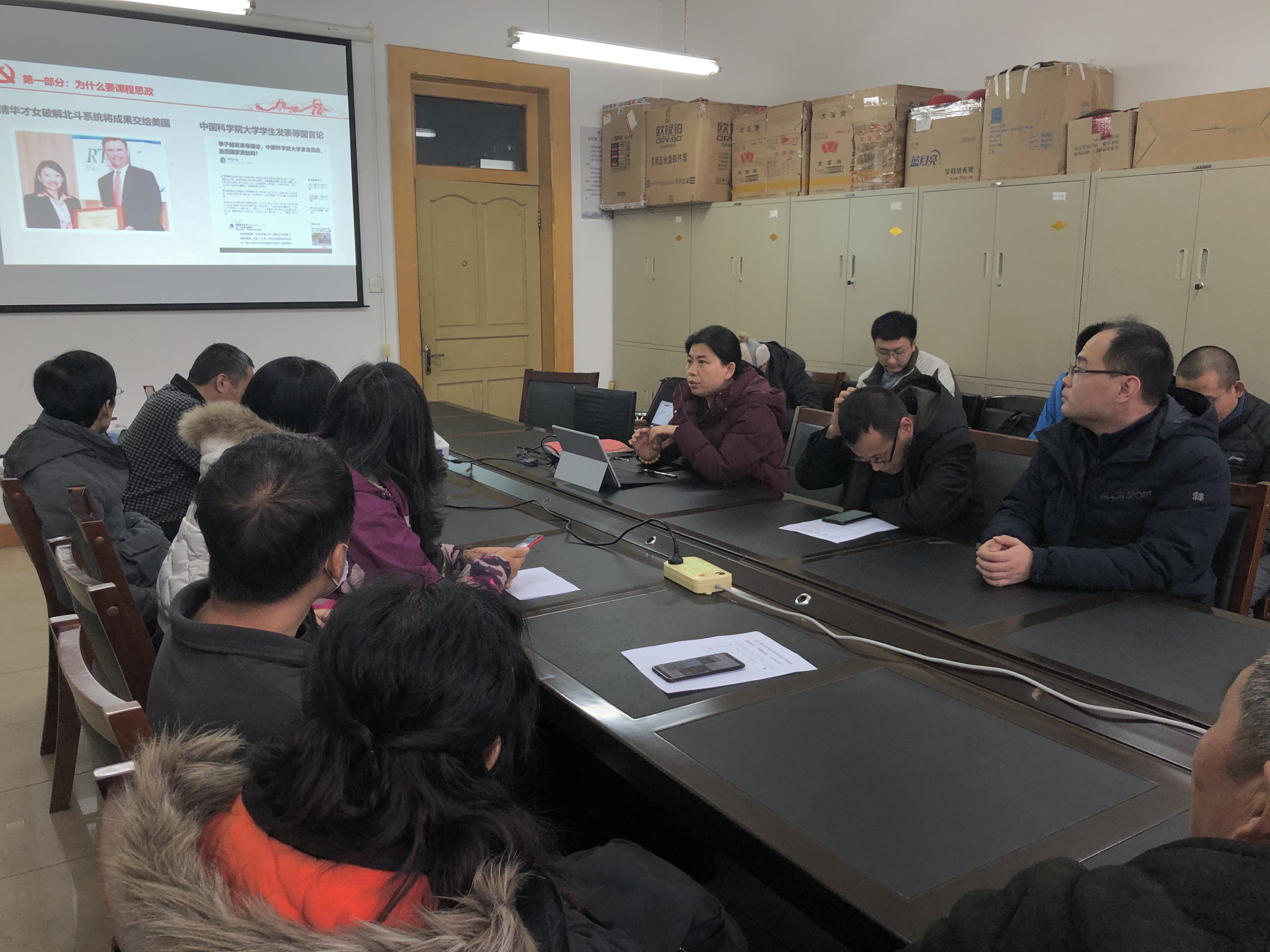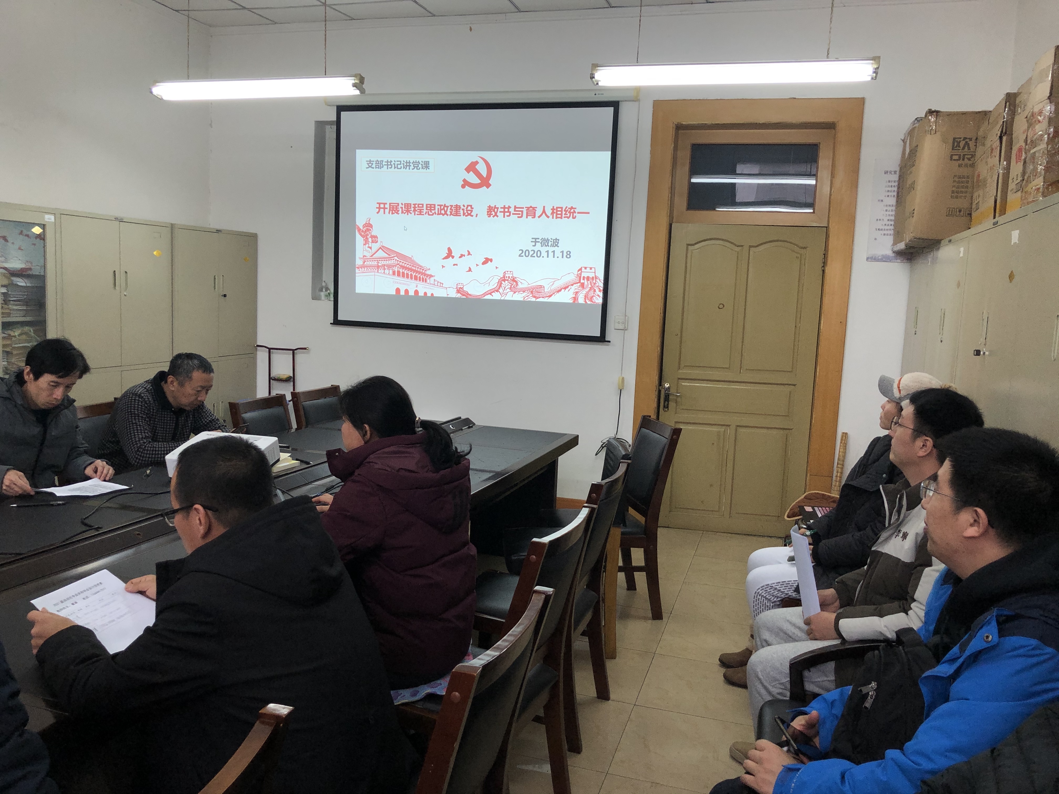 (通讯员刘姝阳)为扎实推进公司“课程思政”建设,有效推进习近平新时代中国特色社会主义思想“进教材、进课堂、进头脑”,让党的十九大精神特别是习近平新时代中国特色社会主义思想深入师生头脑,充分发挥课堂主渠道作用,控制科学与工程系于11月25日下午13:30在主楼1315教研室开展了“课程思政建设,教书与育人相统一”主题党课教育活动。系党支部书记于微波老师为全系教师讲授了主题为“开展课程思政建设,教书与育人相统一”的党课。
