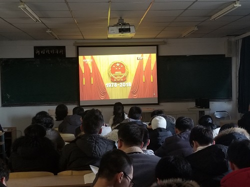 随着李克强总理宣布庆祝改革开放40周年大会正式开始,全体师生起立唱国歌。中央庆祝改革开放40周年是全国人民政治生活的一件大事,是推进新时代治国理政路线方针走向实践的重要举措。习近平总书记的讲话高瞻远瞩、思想深邃、内涵丰富,是做好新时代各项改革工作的根本遵循和行动指南,对新时代改革发展进程具有里程碑意义。参会人员聚精会神地聆听了习近平总书记对改革开放过去四十年的总结,以及对未来中华民族伟大复兴的夙愿。在座师生深感改革开放以来翻天覆地的变化,并坚信以习近平同志为核心的领导集体是成熟的、正确的,大家表示要坚定的紧紧拥护在以习近平同志为核心的党中央周围,将改革开放进行到底。