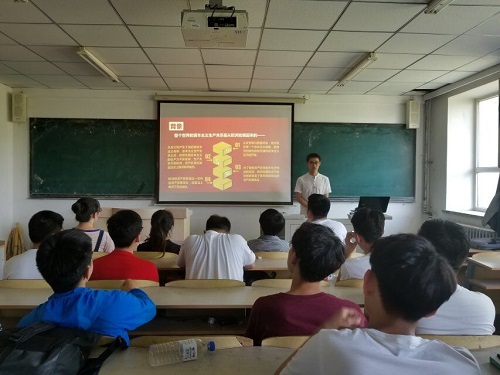 微党课开始,李镇带领大家回顾了《共产党宣言》发布的历史背景,介绍了国际共产主义运动艰辛的发展历程。随后,李镇借对立阶级之间的矛盾来展开话题,详细地介绍了资本主义的发展,以及资本主义一系列的弊端和资本主义的主要矛盾,并细致地介绍了社会主义的优越性。他借《共产党宣言》中的理论指出,社会主义一定要代替资本主义,这样的历史必然性不是人们的主观愿望、主观臆造,而是生产关系适应生产力状况和发展规律的必然结果。而无产阶级的历史使命就是取代资产阶级,解放全人类。在微党课的最后,他再一次强调了我国无产阶级运动的领导力量是中国共产党,并希望在座的同学能够拥护我党的领导,为社会主义建设,为共产主义事业做出自己的贡献。