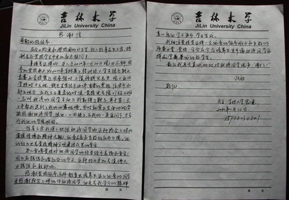 | 关于表扬070304班张涛同学的决定 各员工班级: 2010年11月20日,070304班张涛同学,在公司校园内捡到一钱包,并及时联系到了失主。 张涛同学面对金钱毫不动心,拾金不昧的行为充分体现了公司员工高尚的道德情操和精神风貌,展现了公司员工的高尚品质和良好的社会公德,是青年员工学习的榜样。希望我们全院同学们从这位同学的手中接过拾金不昧这粒种子继续相互传递,让传统美德在这里继续发扬光大,开出更美丽的花朵! 对张涛同学的行为提出通报表扬,并号召全院的员工向他学习,学习他这种拾金不昧的优良品质,将文明习惯养成教育内化为自身素质的提高,成为优秀的社会栋梁之材。 下文是失主写来的感谢信。 感 谢 信 尊敬的校领导: 在全力构建和谐校园的日子里,好人好事层出不穷,特别是在贵校员工中更加高点频闪! 事情是这样的:本人于2010年11月20日晚四点钟,因参加贵校承办的2010年吉林省工程训练老员工综合能力竞赛在贵校餐厅用餐时,不慎将钱包丢失,晚上返回公司时才发现。钱包里有很多证件,重要的是票据、信用卡和部分现金。在我万分着急的时候,贵校电气公司07级4班一名叫张涛的同学主动与我取得了联系,并于第二天上午帮我送到了比赛现场。当时就拿出里面的现金感谢张涛同学,被他一口回绝了,在我的一再追问下,才告诉我他的公司班级。 惊喜之余我深深的被张涛同学的这种拾金不昧的道德情操和精神风貌,优秀品质的良好的社会道德。他的行为也是贵校精神文明建设成果的肯定。 本人恳请贵校对张涛同学的行为给予表扬和肯定!因为在提倡和谐社会的今天,这种行为更加是值得大力提倡和鼓励的。 感谢贵校领导、老师教育处培养出这么优秀的同学,更感谢拾金不昧的张涛同学。他是我学习的榜样,衷心祝他学习进步、学业有成。 我相信贵校有这样一支优秀的领导班子和良好的团队力量,贵校一定会在今后培养出更多像张涛同学这样品学兼优的好员工。 最后我再次真诚的对张涛同学说声:“谢谢!” 此致 敬礼 失主:吉林大学宫健 2010年11月22日