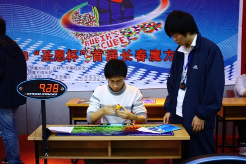 12月7日,由公司魔方协会和吉林大学魔方协会共同举办的“2008圣恩杯”首届长春魔方公开赛在公司综合楼三楼报告厅举行。长春晚报,新文化报、城市晚报、吉林电台等新闻媒体对本次活动进行了全程报道。校员工工作处副处长杨文龙,校团委副书记胡刃锋,公司党总支副书记周文军及员工工作办公室各位老师出席了本次活动。 这次长春公开赛是即北京、上海、广州之后我国第四次地域性的大型公开赛。参加本次比赛的有来自吉林、黑龙江、辽宁和内蒙古四个省份的47名高手。这些选手中年龄最小的是15岁的初中生,年龄最大的是35岁的教师。和选手一同到来的还有许多亲友团和慕名而来的观众。本次大赛共有Square-1、二阶速拧、三阶速拧、四阶速拧、三阶单手速拧五大项目。上午9点半,公开赛拉开帷幕,打乱区、裁判区等工作人员各就各位,比赛如火如荼的进行起来。魔方在各选手灵活的手指间飞快旋转,每当有选手突破记录都会引起观众和亲友团的欢呼和鼓掌,场面热烈而火爆!比赛期间,大赛的组委会还特意为观众们准备了表演,飞碟杯和魔块、魔球、魔板、XQ魔方等各种异型魔方飘逸地旋转在高手们的手中,简直成为了一个个具有魔力的精灵,引起了现场一片片欢呼声,所有的观众几乎都站了起来,把现场气氛推到了高潮!在下午的三阶速拧半决赛中,一个来自本省的选手复原的时间达到了17.24秒,与世界记录只差了2.10秒,当时他的母亲激动的上前去拥抱了他的儿子,那一刻牵动了所有在场人的心!最后经过了初赛、复赛、半决赛、决赛多轮的角逐,公司张显吉和吉林大学王思宇等多名选手获得了各个项目的冠军。下午4点半,与会的领导为获奖者颁发了证书和奖品,历时7个小时的比赛圆满的落下了帷幕。 魔方是匈牙利建筑学教授和雕塑家厄尔诺鲁比克于1974年发明的,上世纪八十年代传入中国。玩魔方是一项能增强空间想象能力的传统的智力游戏,包括极具刺激性和竞技性的速拧,单拧,盲拧等玩法。如今魔方文化在欧洲各国家已经十分盛行,而在中国,还仍处在一个初步发展的阶段。这次公开赛的成功举办使所有到场的人们深深的意识到魔方不仅仅是开发智力的玩具,它已日渐成为一种学术性的文化,并且在中国,也有肥沃的发展土壤和广阔的发展空间。我们也能有专业的选手和职业的比赛!此次公开赛在公司的成功举办,丰富了公司老员工的校园文化生活,也为构建公司多元社团文化做出了积极的贡献。