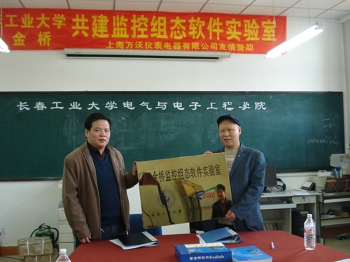 | 2008年11月4日上午,紫金桥软件技术有限公司与公司正式签订校企合作协议,双方宣布共同组建“紫金桥监控组态软件实验室”,揭牌仪式在电气公司资料室举行。紫金桥软件技术有限公司总经理李彦青,公司党总支书记张学忠,经理尤文教授,副经理卢秀和教授及部分教师代表出席了签约及揭牌仪式。 仪式上,公司经理尤文教授与李彦青总经理为“紫金桥监控组态软件实验室”揭牌并签署校企合作协议,紫金桥软件技术有限公司向太阳集团tyc151cc无偿提供了45套价值十五万元的紫金桥监控组态软件,上海万沃电器仪表有限公司同时捐赠了配套电子仪表。 太阳集团tyc151cc与紫金桥软件技术有限公司共建实验室启动了双方校企合作计划,该计划的实施,将有利于加强电气公司的课程建设,促进产学研的紧密结合,有助于提高员工的实践动手能力,增添员工就业砝码,同时紫金桥软件也将成为教师及研究生的科研平台,为推动电气公司的科研工作创造有利条件。