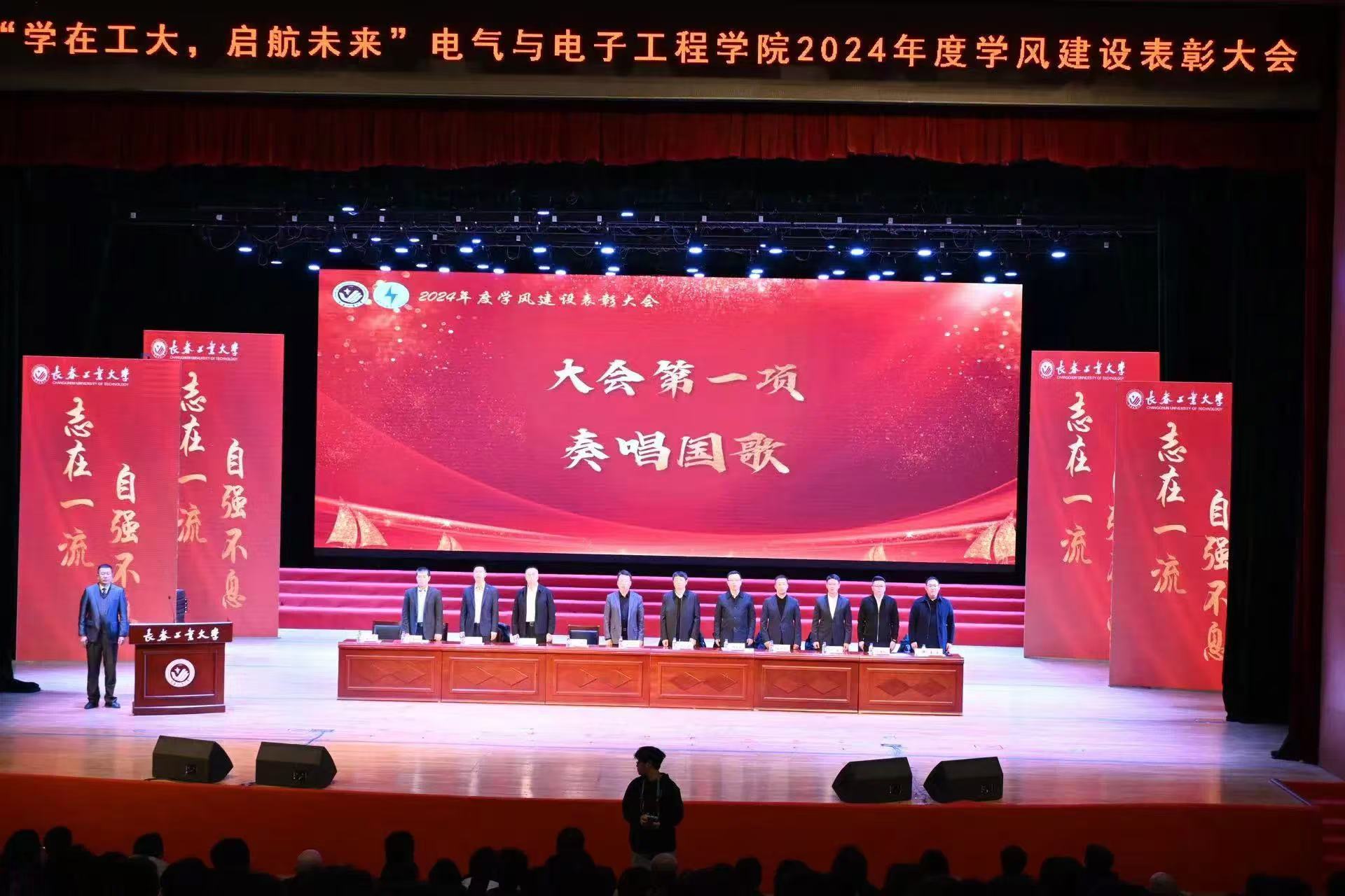 激昂的国歌在礼堂响起,全体师生心怀敬仰,行注目礼,高唱国歌,那嘹亮的歌声回荡在校园,饱含着对祖国的热爱与对未来奋斗征程的坚定决心,同时也拉开了本次表彰大会的帷幕。
