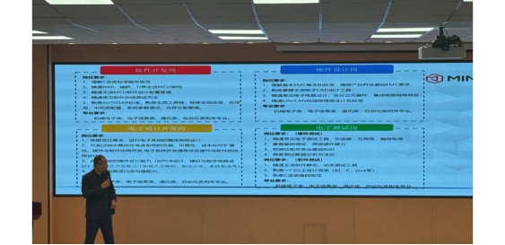 曼德-光电长春分部分公司代表李悦介绍了企业发展概况、长春分部的业务布局、核心产品研发及未来战略规划。他表示,曼德-光电高度认可公司的人才培养质量,特别提及公司毕业生在企业岗位上展现出的严谨态度与高效执行力,希望通过此次招聘吸纳更多优秀学子加入,与企业共筑发展蓝图。人力资源部门代表苗天生详细解读了此次招聘的岗位需求、薪资福利体系、职业晋升通道及招聘全流程安排,邓考、李欣则针对同学们关心的实习考核、技能培训、落户政策等问题进行了逐一回应,现场互动氛围热烈。